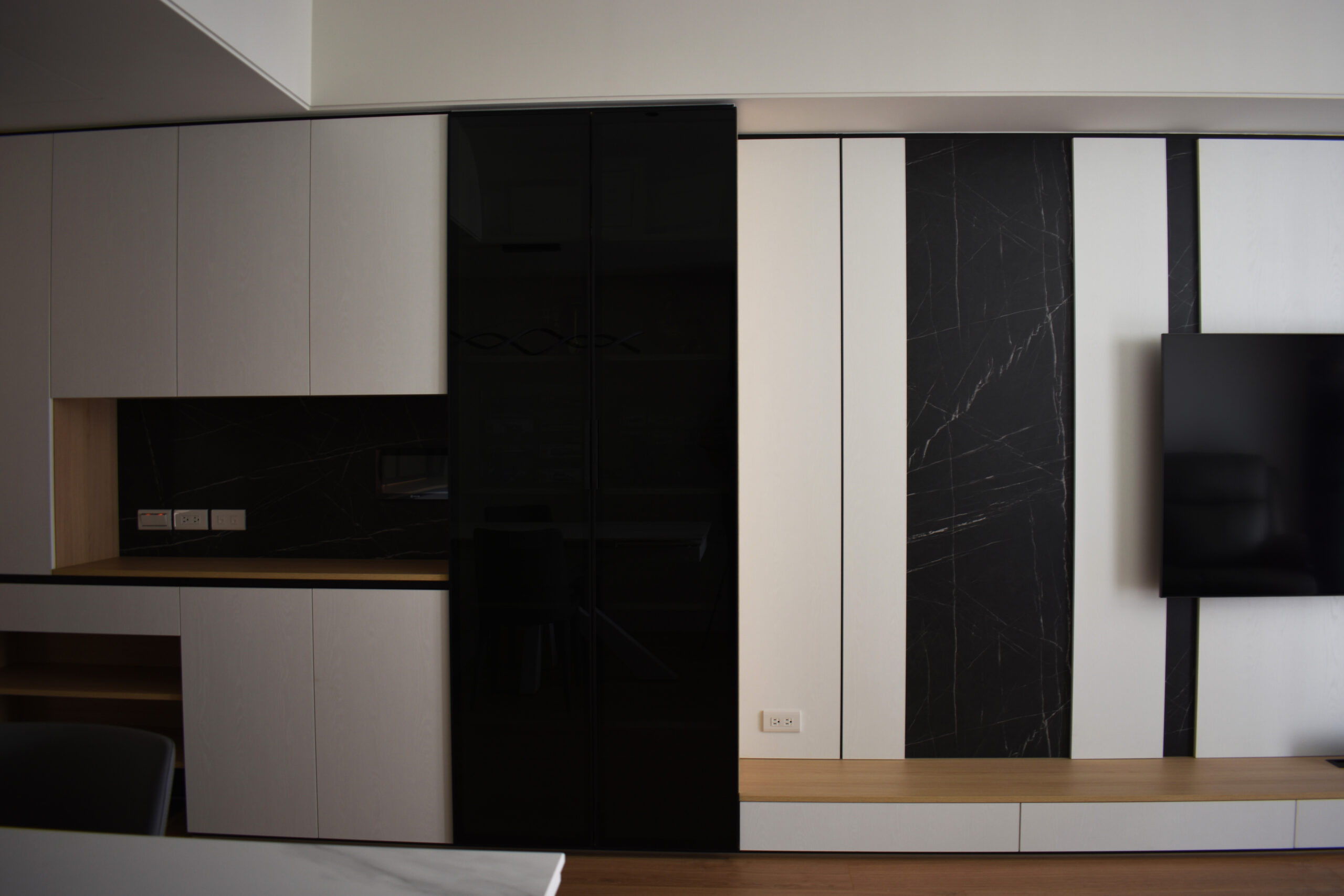 簡潔的設計強調精簡與平衡,將繁雜的元素去除,讓空間展現出平靜而有序的氛圍。設計師巧妙地運用簡約的線條、柔和的色彩和鏡面元素來提升視覺延伸感,讓整個空間看起來更加寬敞。天花板的圓角設計則柔化了原本的銳利感,使空間流線更加順暢。每一個細節都經過精心考量,設計師充分利用每個角落,將功能與美感完美結合,打造出一個既舒適又有格調的居家空間。